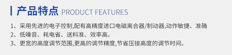 1.采用先進的電子控制,配有高精度進口電磁離合器/制動器,動作敏捷、準(zhǔn)確。
