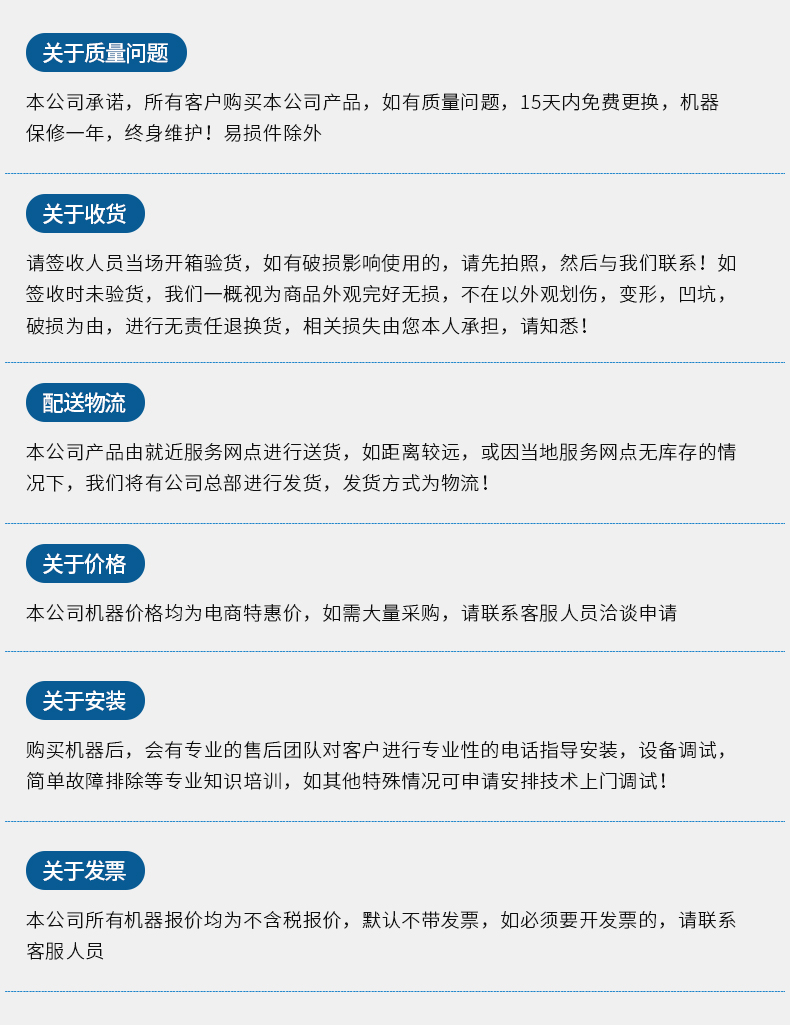 本公司提供培訓(xùn)、安裝、調(diào)試、保養(yǎng)、維修一體化服務(wù)。